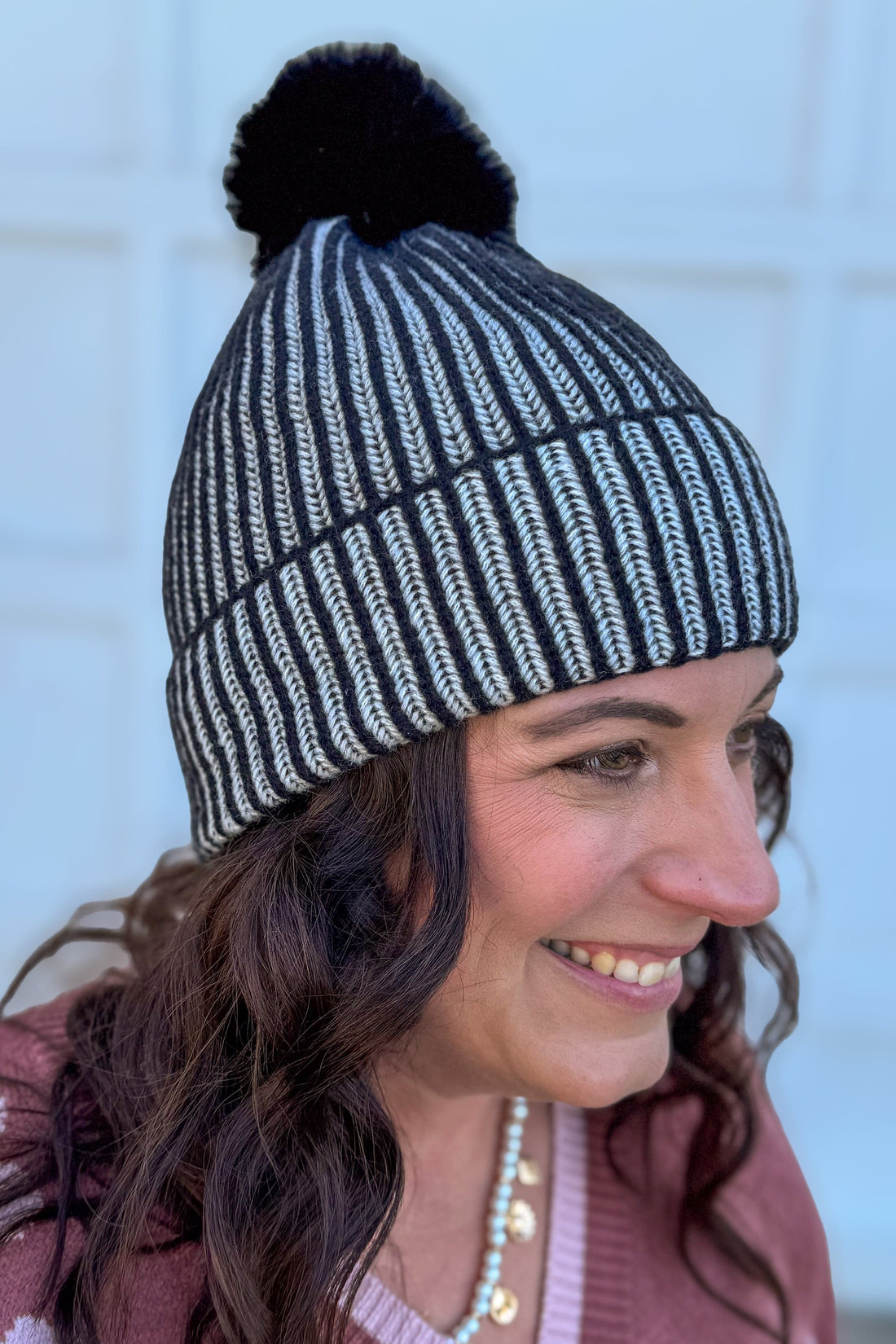 Black Ribbed Pom Beanie with Fur Lining