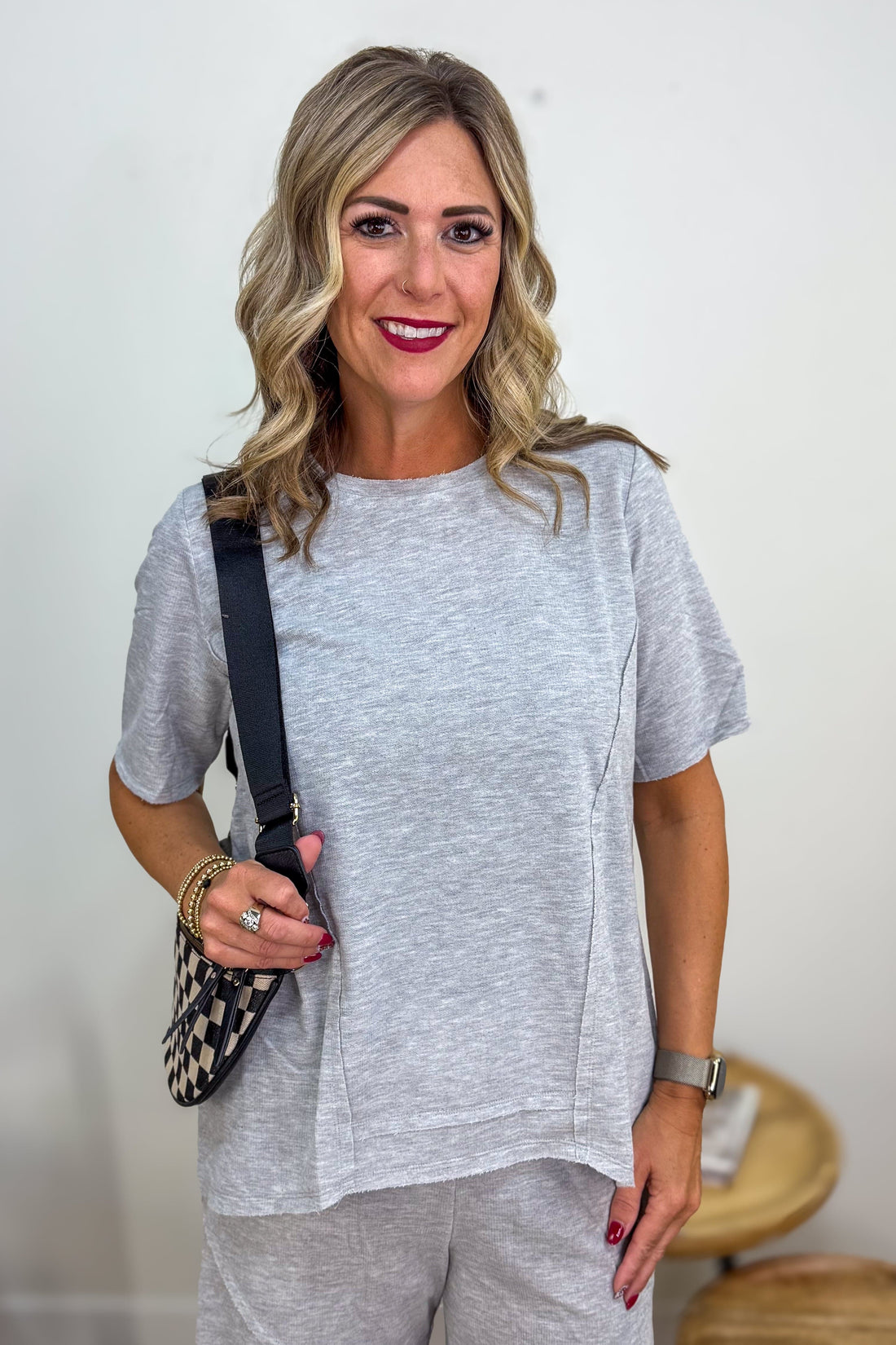 Light Grey Raw Hem Tunic Top
