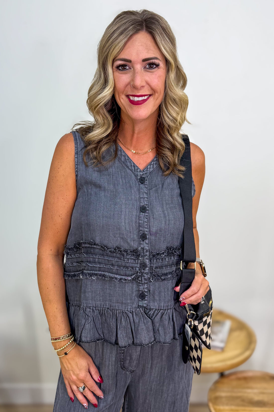 Black Chambray Tiered Ruffle Vest