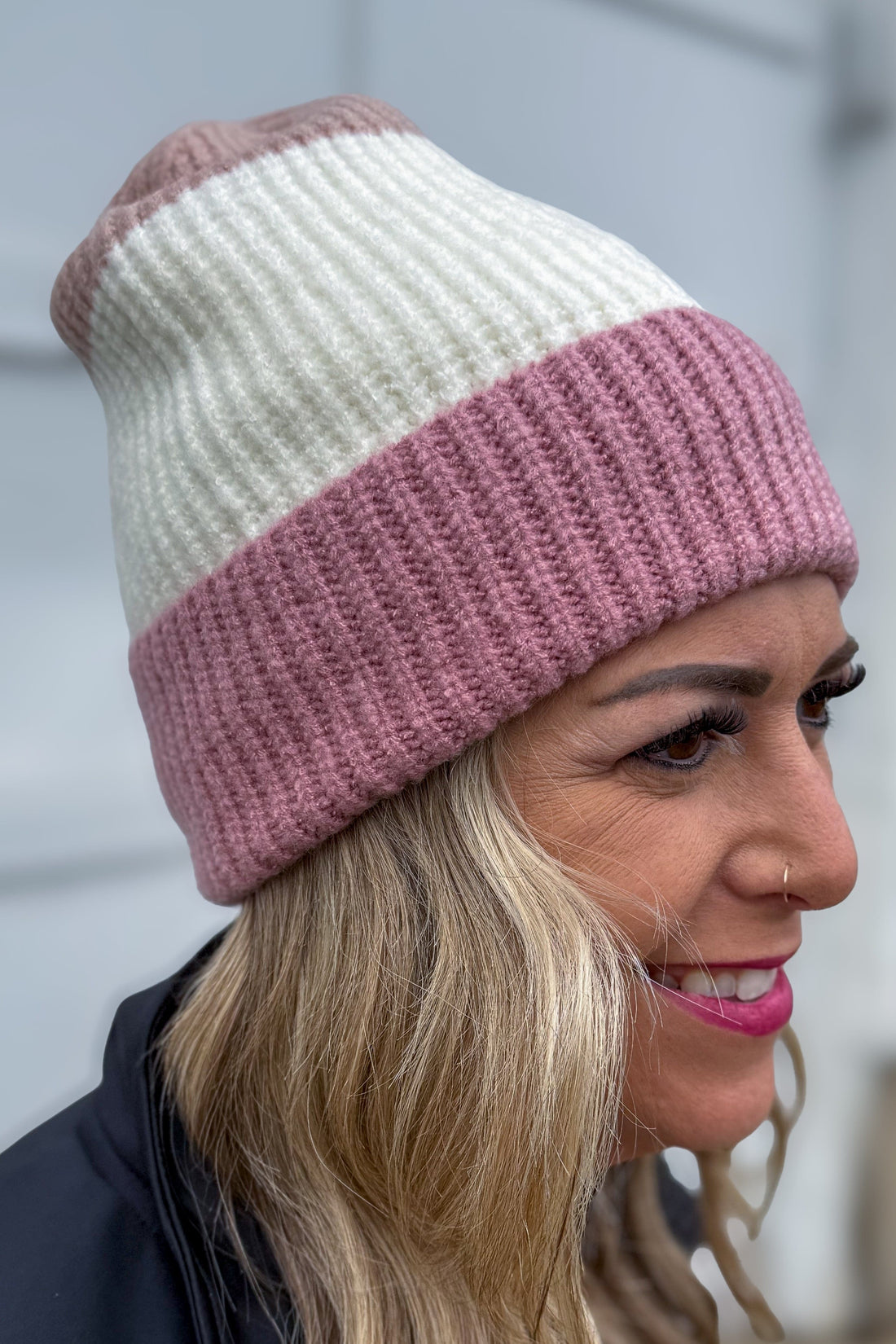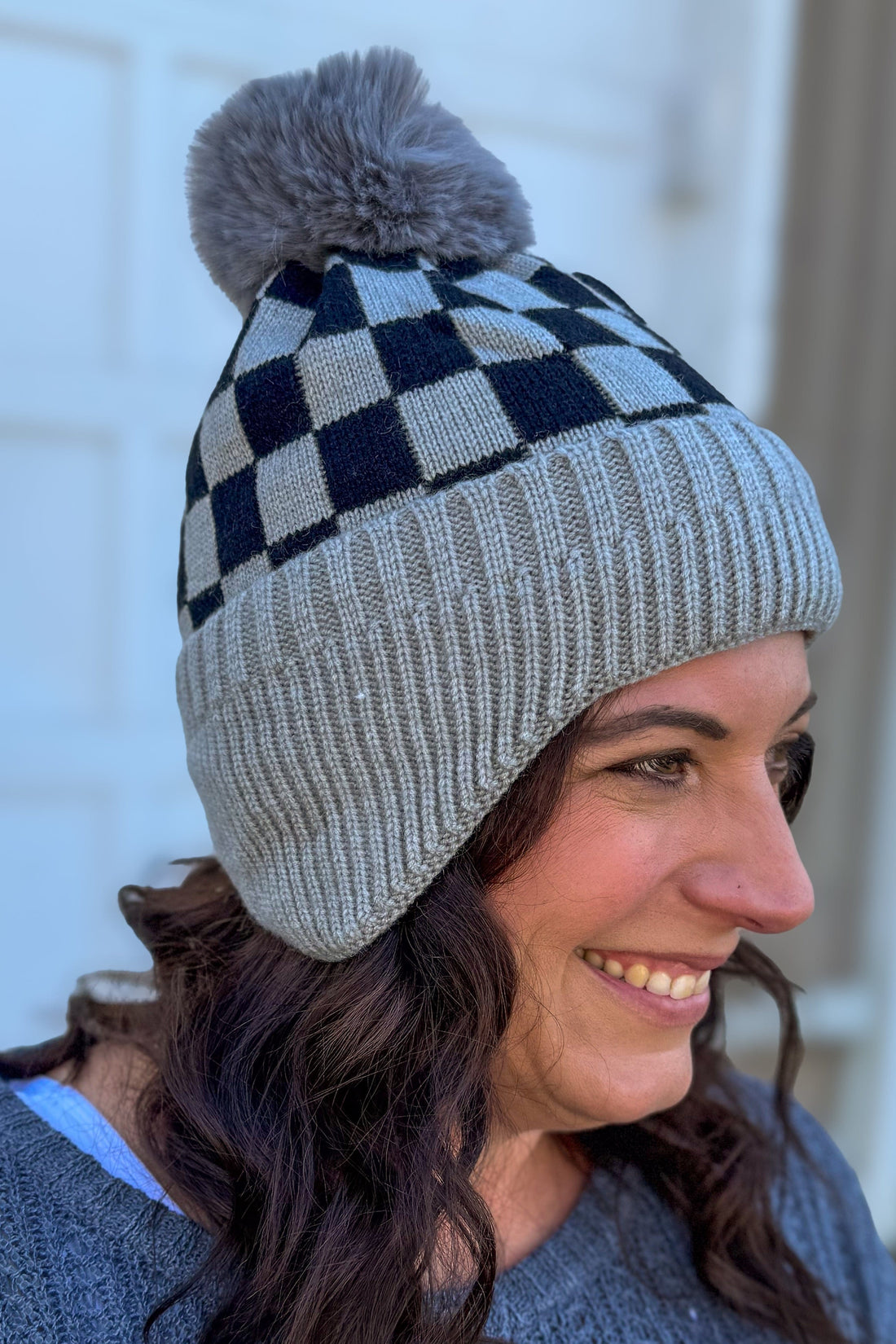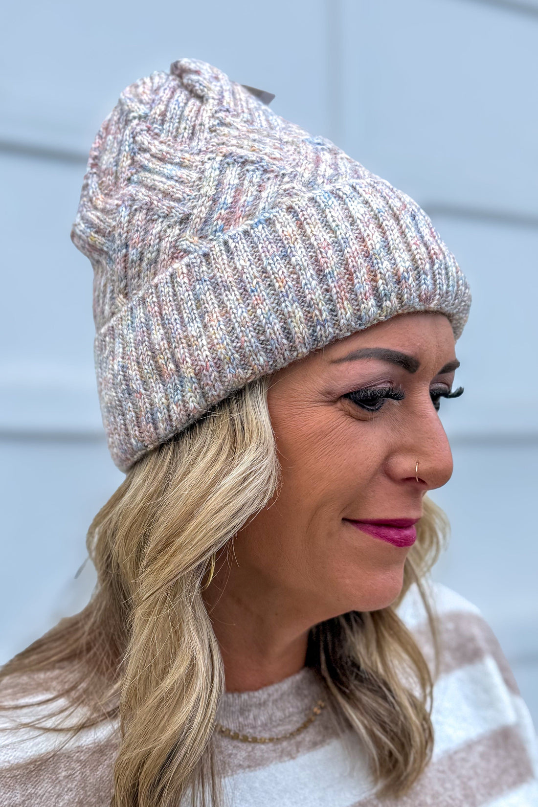 Ivory Textured Multi Yarn Beanie with Fur Lining