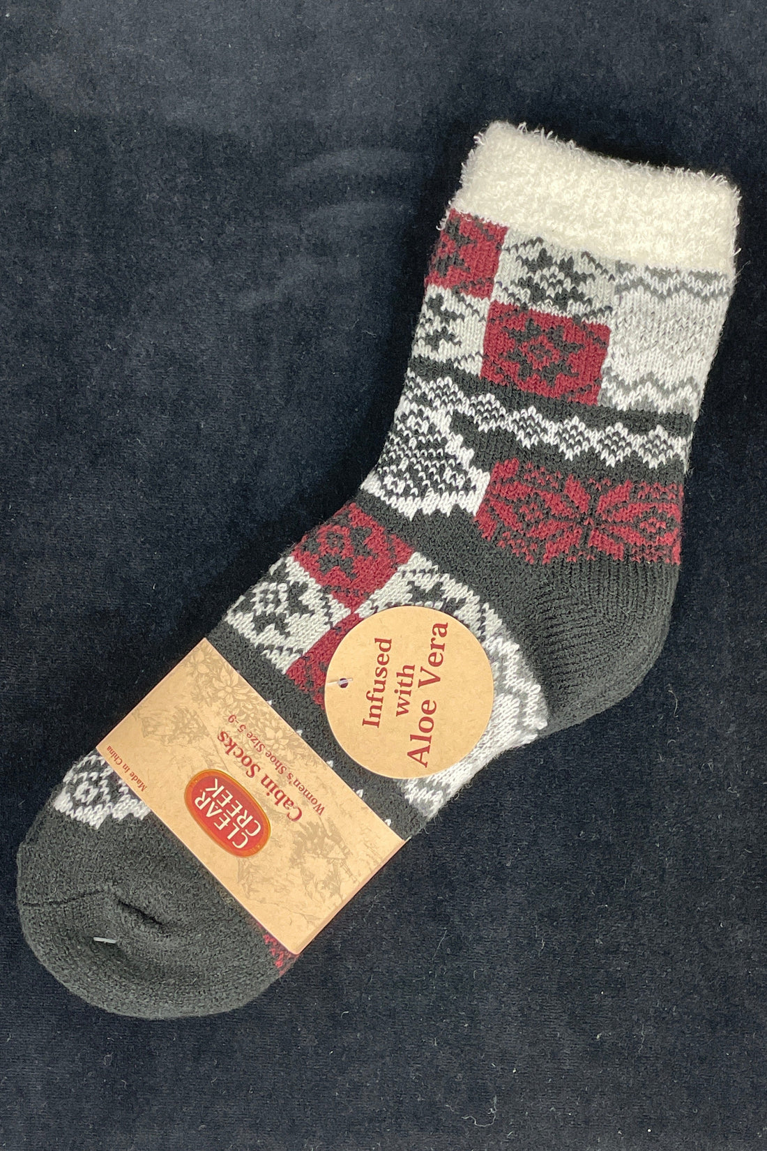 Black & Burgundy Snowflake Aloe Cabin Sock
