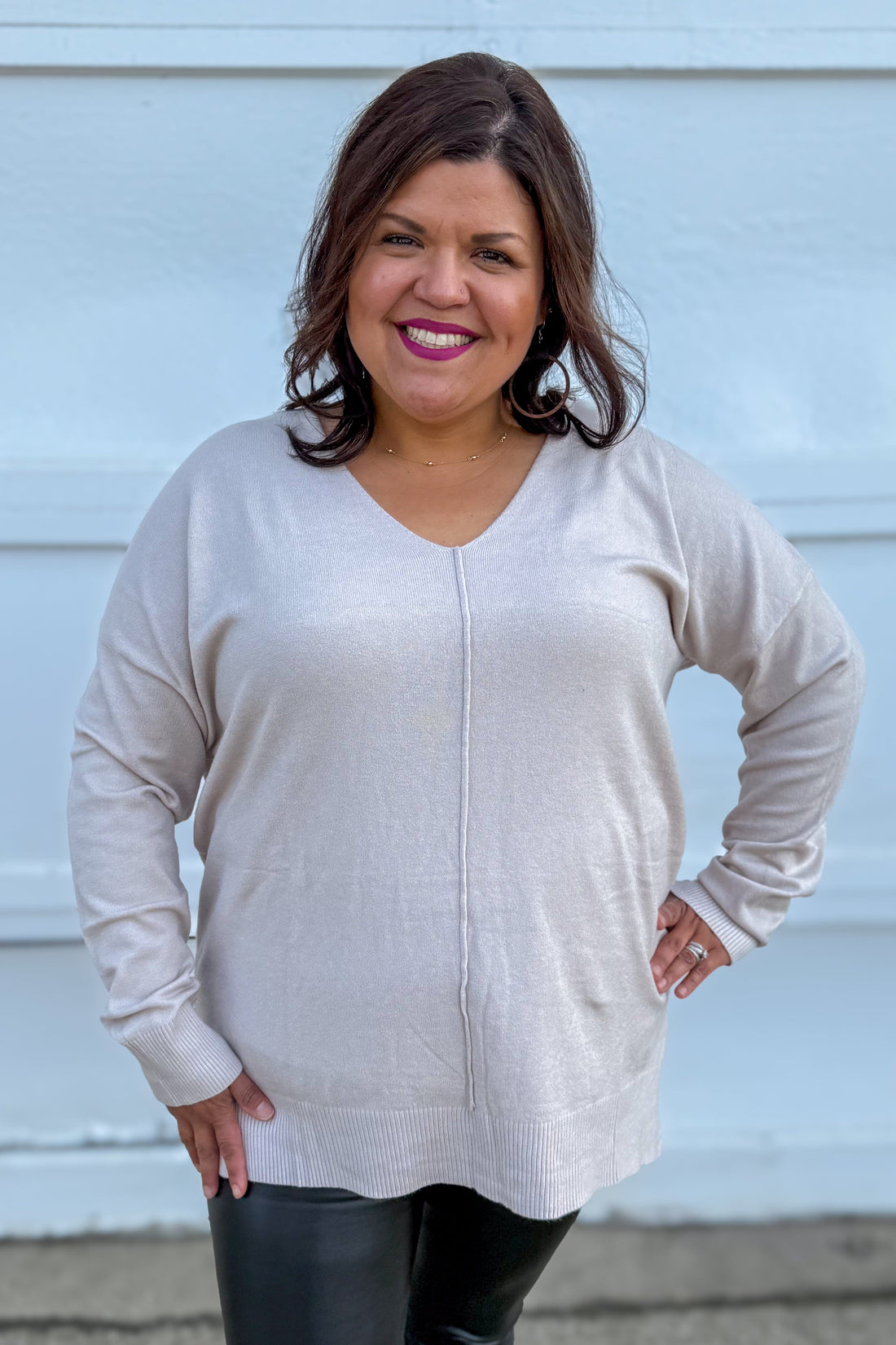 Bone Viscose Front Seam Sweater