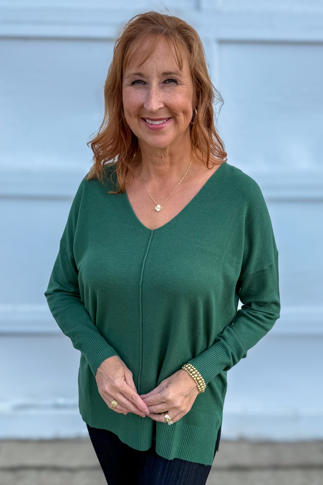 Dark Green Viscose Front Seam Sweater