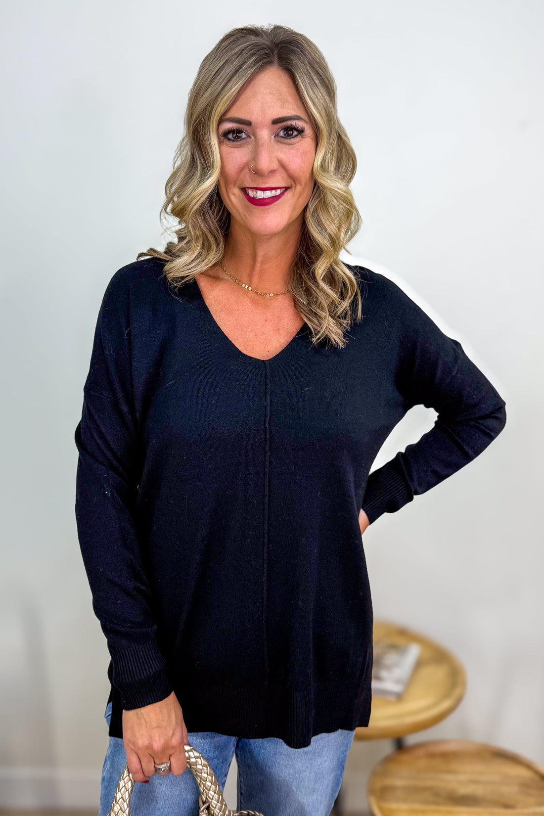 Black Viscose Front Seam Sweater