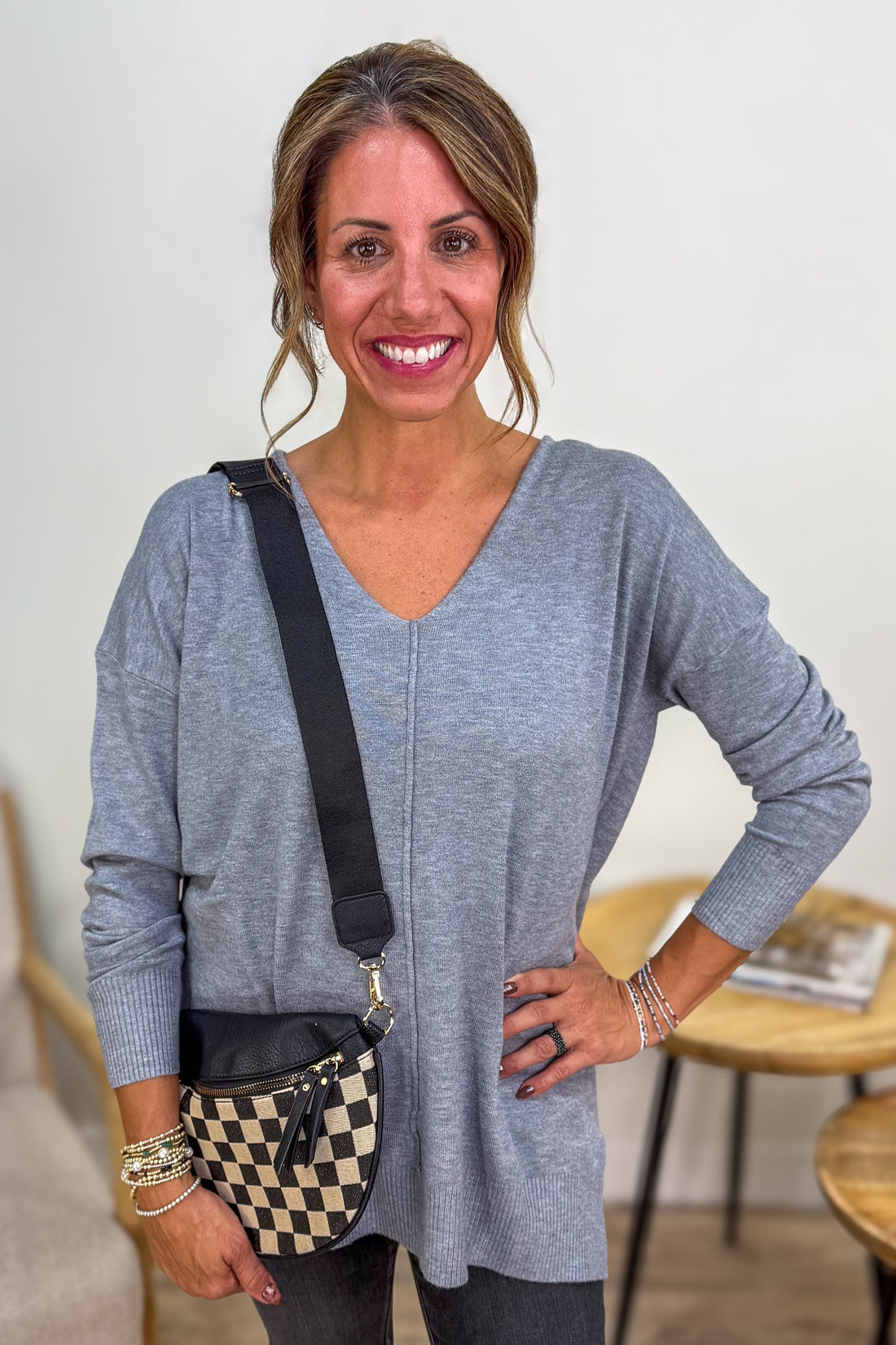 Heathered Grey Viscose Front Seam Sweater