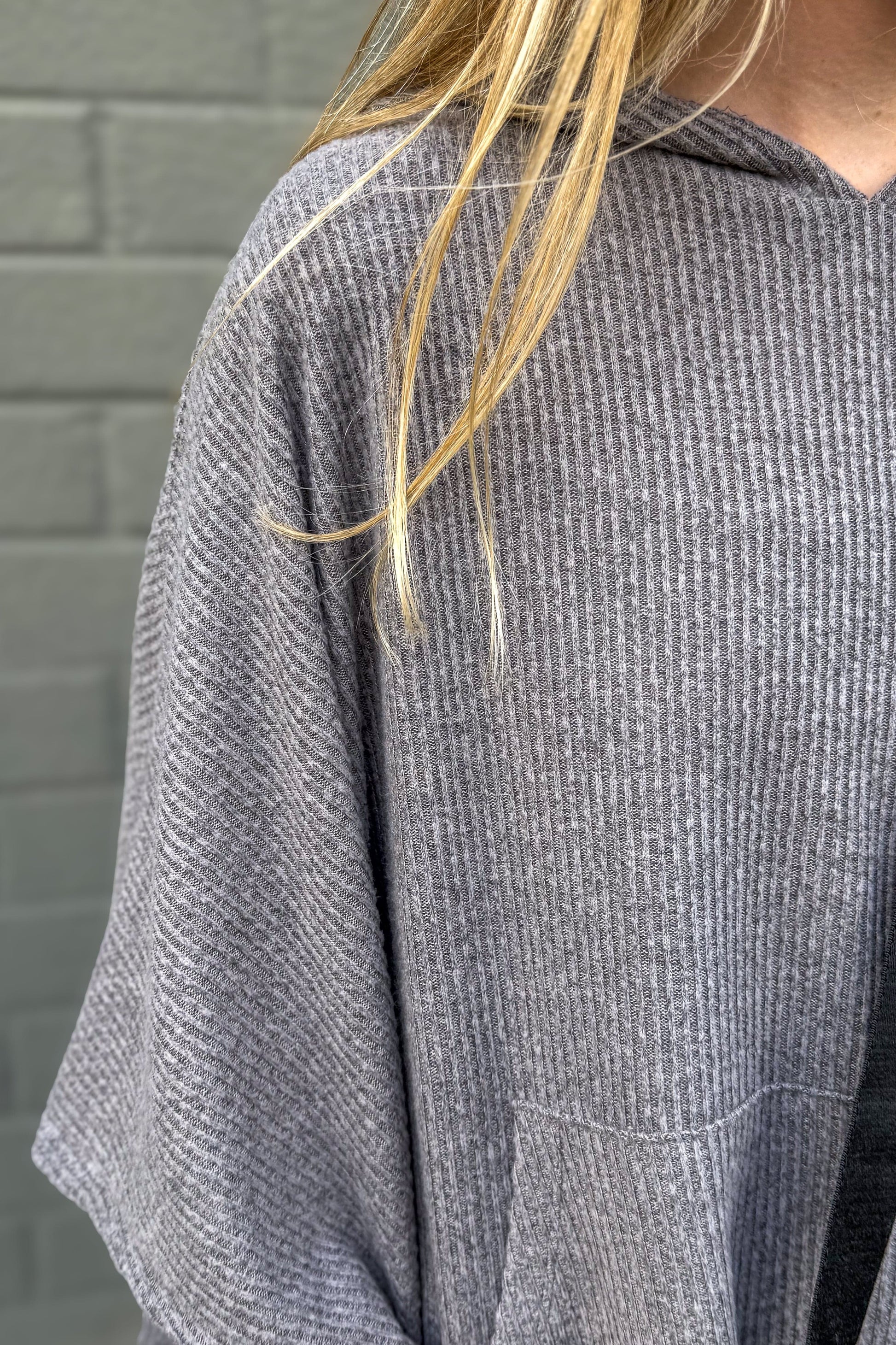 Charcoal Horizon Ribbed Hooded Poncho
